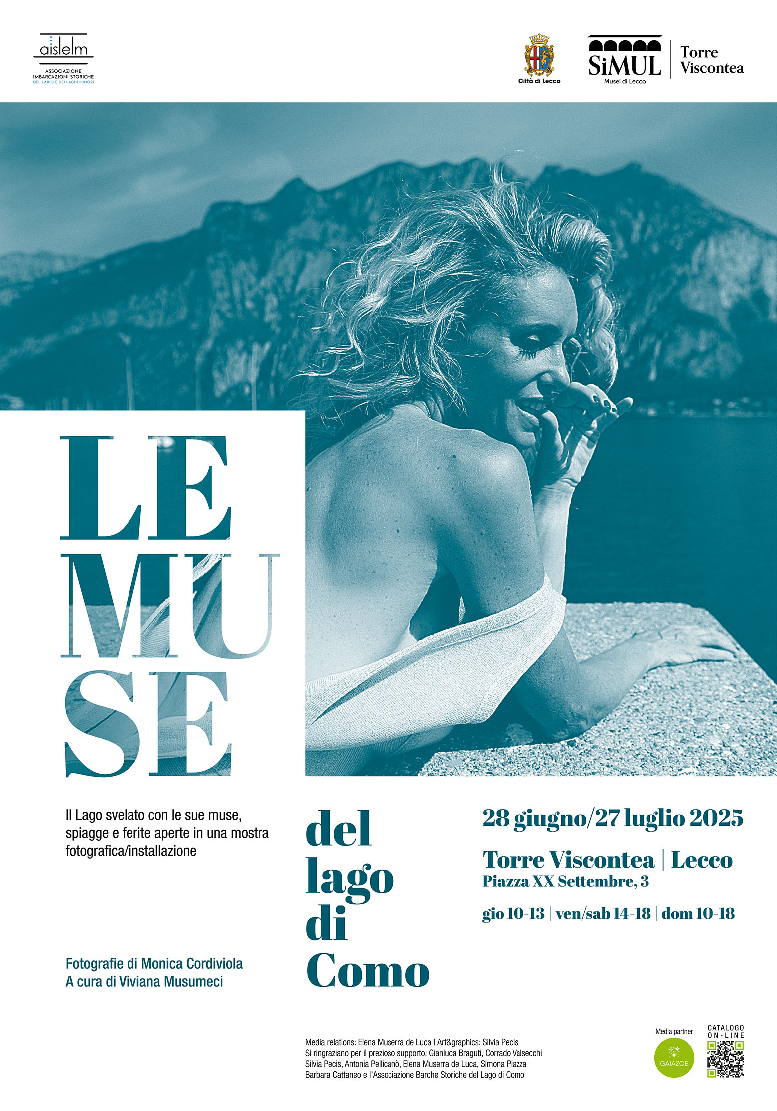 Curo il progetto grafico di materiale cartaceo e web per la mostra Le Muse del Lago di Como, ideata e curata dalla giornalista e docente Viviana Musumeci, con gli scatti di Monica Cordiviola.